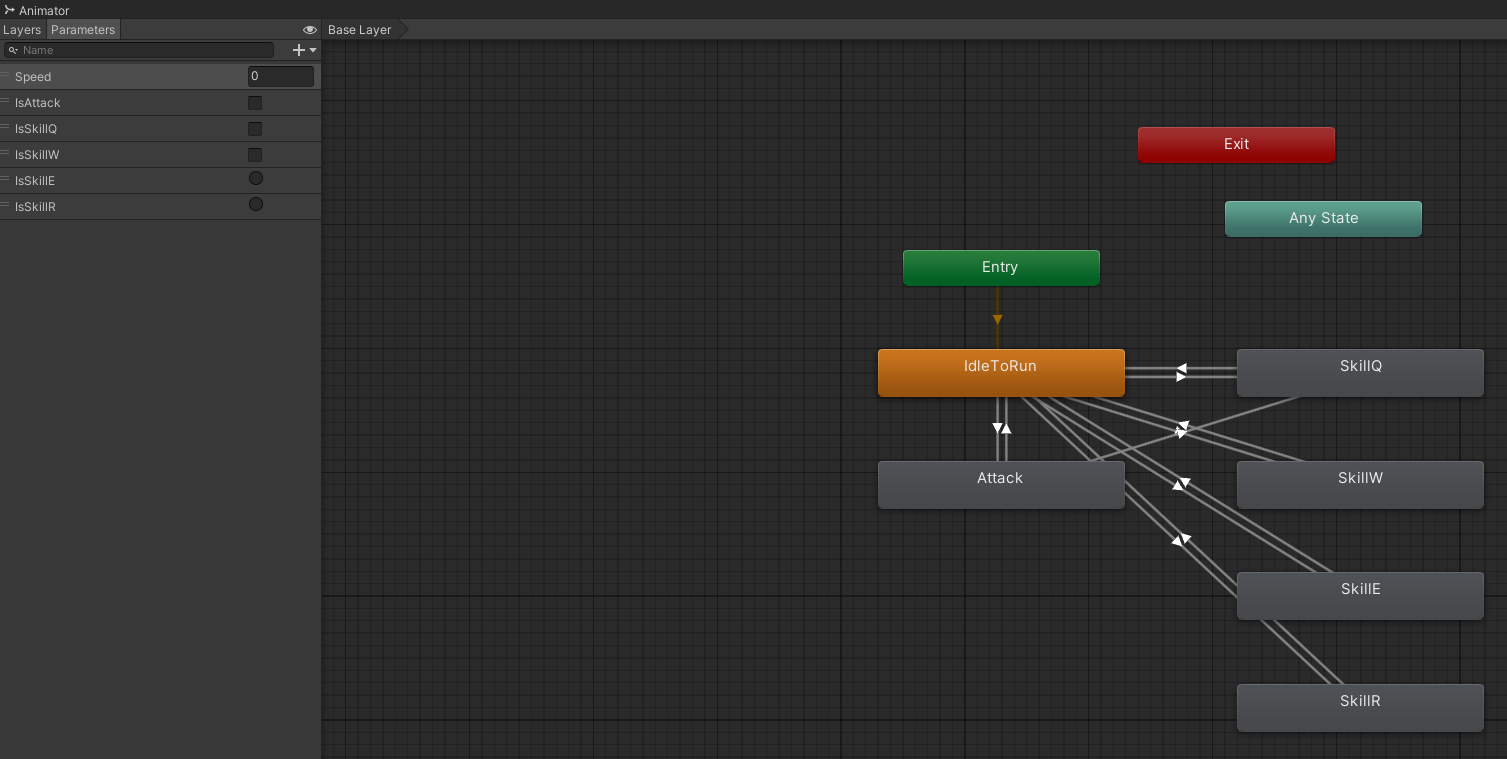 가장 먼저 이전에 작업했던 Skill에 애니메이션 전이 조건을 실행되게 작업하려던 도중