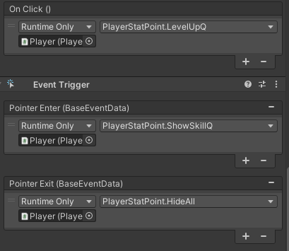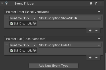 마우스가 스킬 이미지에 올라왔을 때 / 벗어났을 때는 EventTriger의 Enter / Exit를 사용하였습니다.