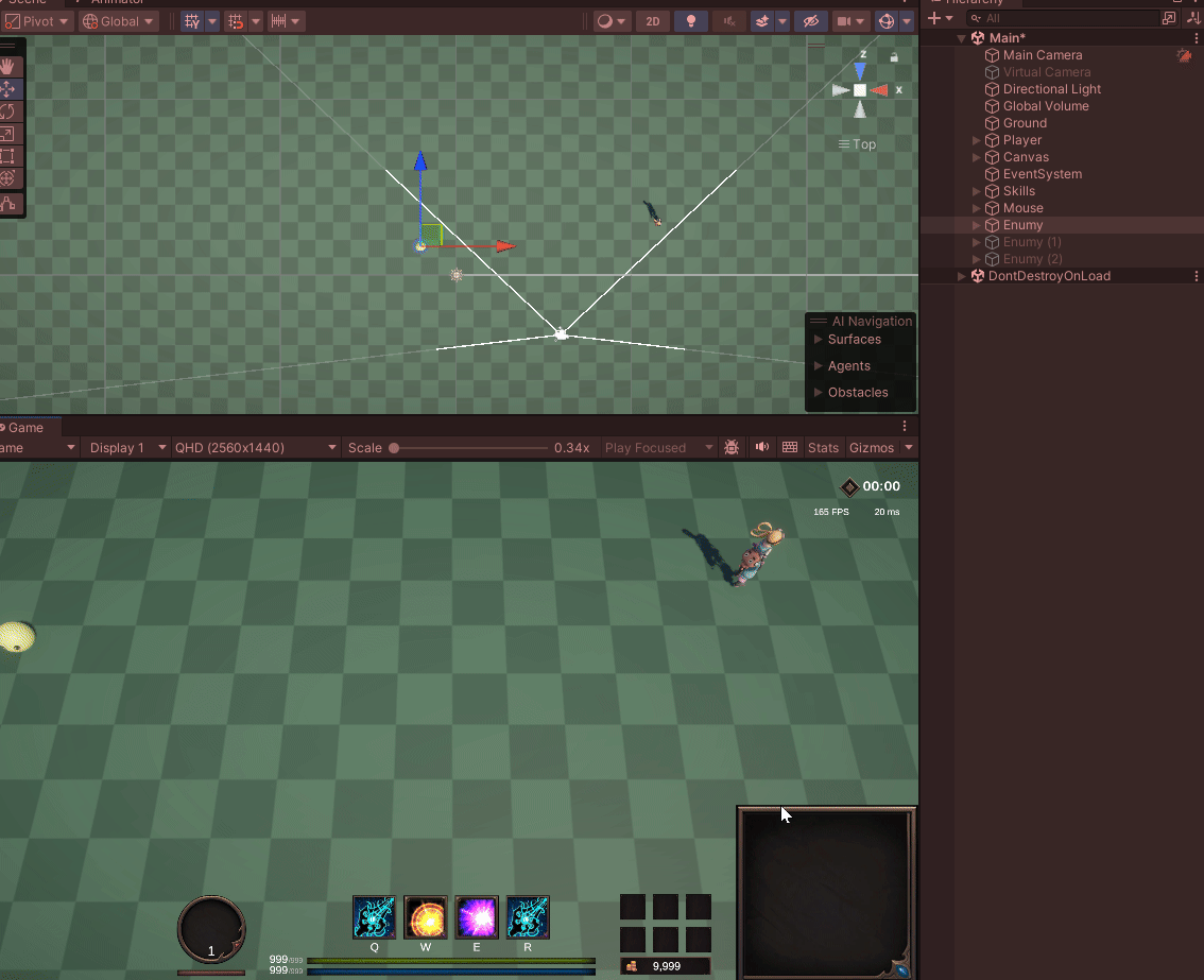 다음은 플레이어의 이동을 담당하는 "PlayerMovement" 스크립트에서 Ray로 Enumy가 선택 됐는지 판단할 예정이기에