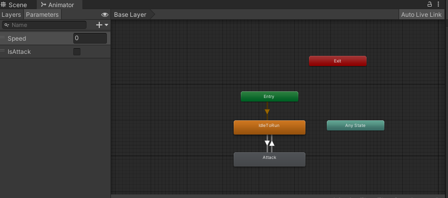 다음은 플레이어의 애니메이터에 "IsAttack" 파라미터를 생성해 주어