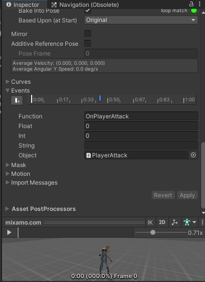 이번 작업은 플레이어의 기본 공격과 애니메이션 작업을 병행해 주었습니다.
